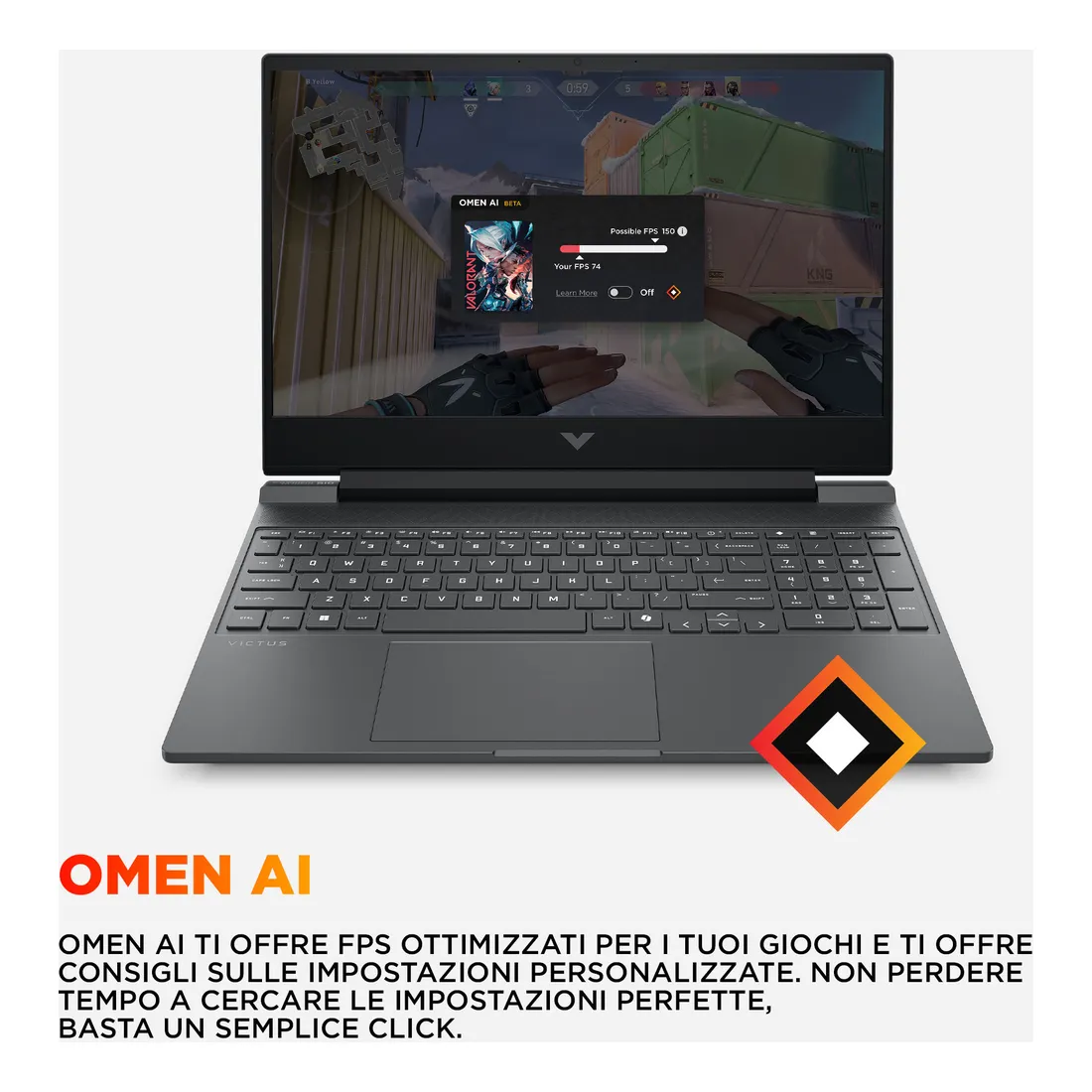 HP Victus Gaming 15-fa2016nl. Tipo di prodotto: Computer portatile, Fattore di forma: Clamshell. Famiglia processore: Intel® Core™ i5, Modello del processore: i5-13420H. Dimensioni diagonale schermo: 39,6 cm (15.6″), Tipologia HD: Full HD, Risoluzione del display: 1920 x 1080 Pixel. Memoria Interna: 16 GB, Tipo di RAM: DDR5-SDRAM. Capacità totale di archiviazione: 512 GB, Supporto di memoria: SSD. Modello scheda grafica integrata: Intel® UHD Graphics, Scheda grafica dedicata: NVIDIA GeForce RTX 5050. Sistema operativo incluso: Windows 11 Home. Colore del prodotto: Nero