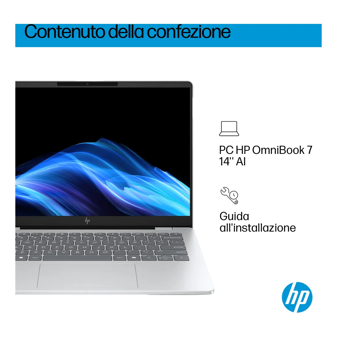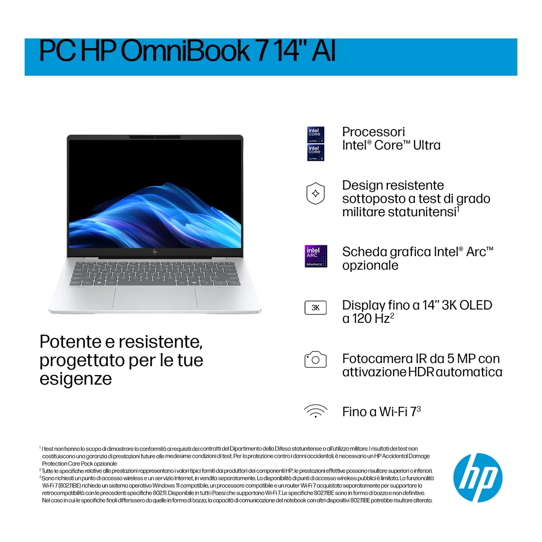 HP OmniBook 7 Laptop AI 14-fr0028nl. Tipo di prodotto: Computer portatile, Fattore di forma: Clamshell. Famiglia processore: Intel Core Ultra 7, Modello del processore: 255H. Dimensioni diagonale schermo: 35,6 cm (14″), Tipologia HD: 2K, Risoluzione del display: 1920 x 1200 Pixel. Memoria Interna: 32 GB, Tipo di RAM: LPDDR5-SDRAM. Modello scheda grafica integrata: Intel Arc 140T. Sistema operativo incluso: Windows 11 Home. Colore del prodotto: Argento. Peso: 1,41 kg
