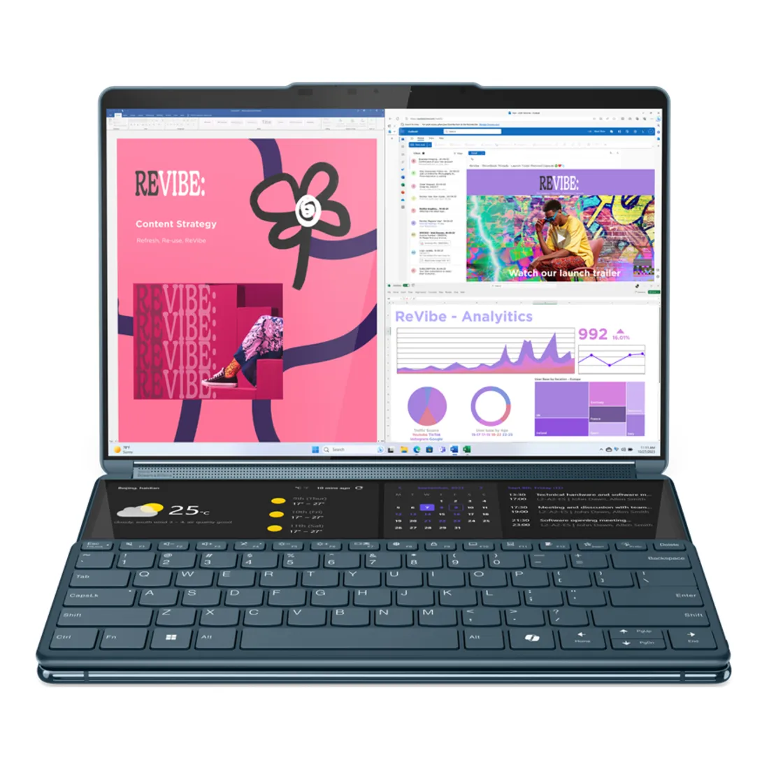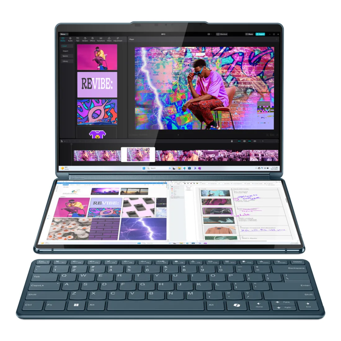 Intel Core Ultra 7 155U, 12C (2P + 8E + 2LPE)/14T, Max Turbo up to 4.8Ghz, 12MB, 32GB LPDDR5x-7467, 1TB SSD M.2 2242 PCIe 4.0×4 NVMe, 2x 13.3″ 2.8K (2880×1800) OLED 400nits Glossy / Anti-fingerprint 100% DCI-P3 60Hz Eyesafe Dolby Vision DisplayHDR True Black 500 Glass Touch, Intel Graphics, Wi-Fi 6E 11ax 2×2 + BT5.3, 5.0MP + IR with E-shutter, Windows 11 Home