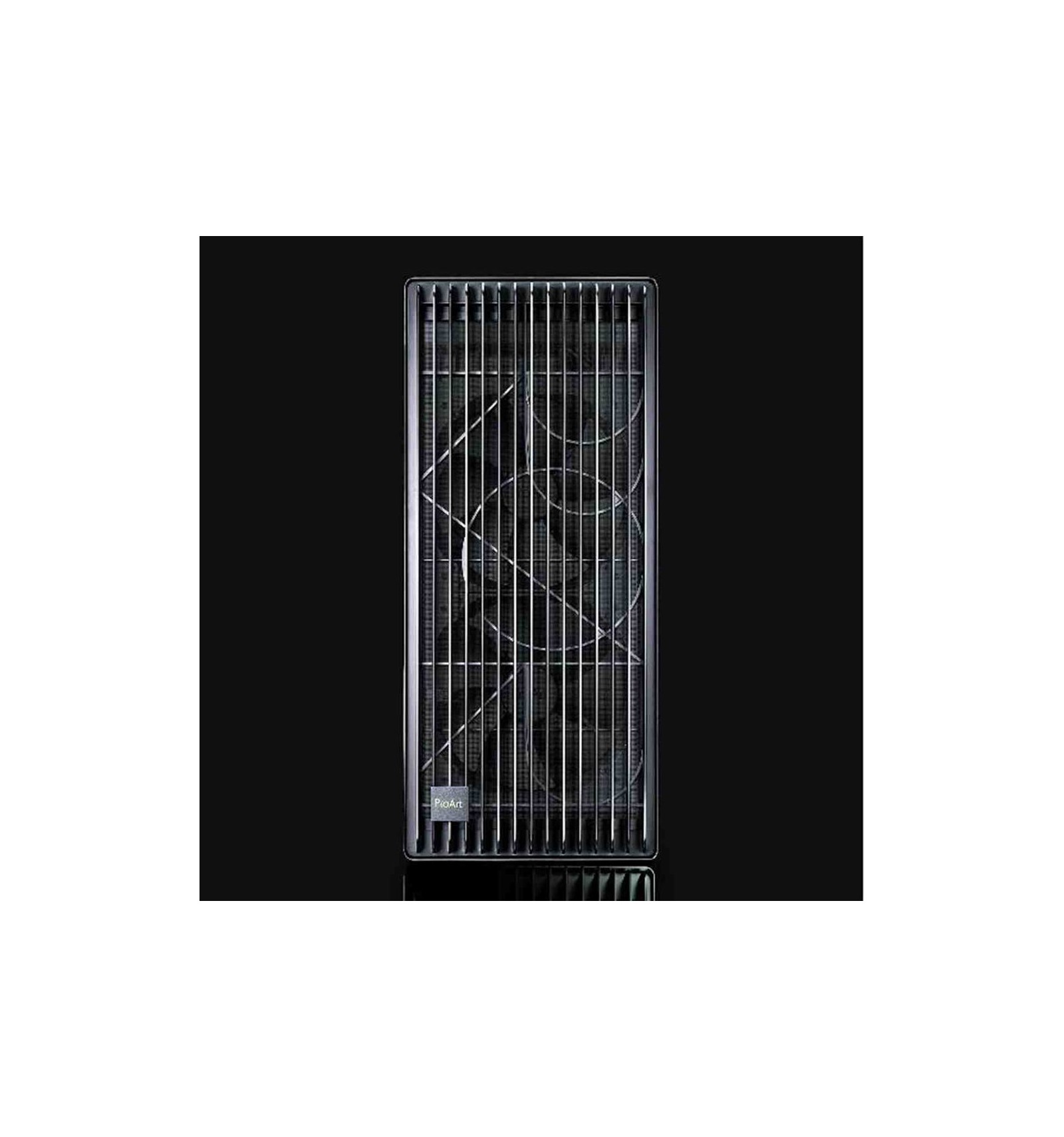 Flusso d'aria di livello superiore: Griglia del pannello frontale da 15,5 mm con porosità del 45%, due ventole frontali extra-spessore da 200 x 38 mm per il massimo afflusso d'aria e una ventola di scarico posteriore da 140 mm.