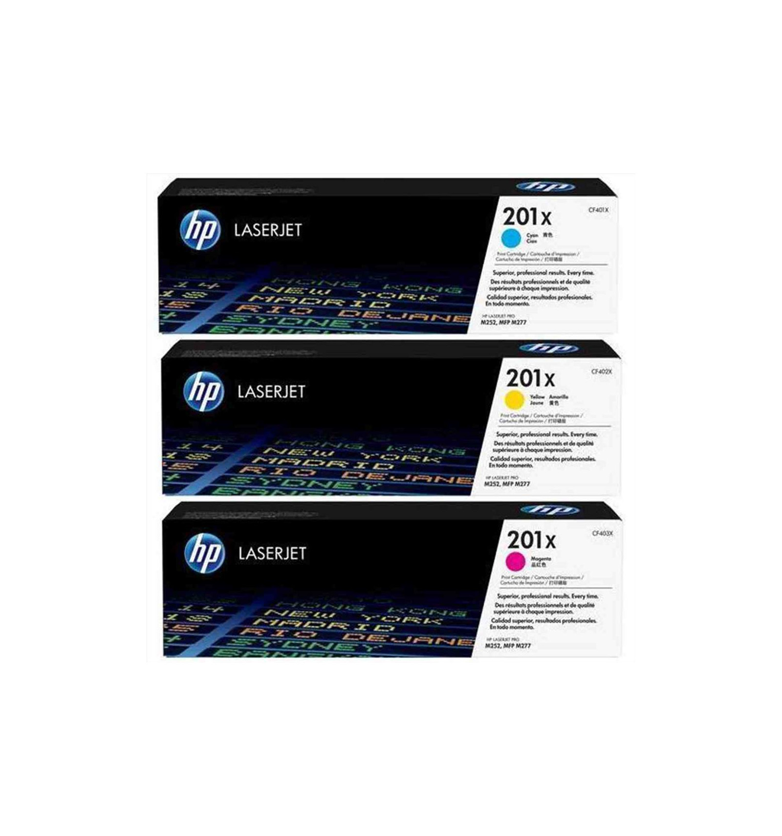 Confezione da 3 cartucce toner ciano/magenta/giallo originale ad alta capacità LaserJet HP 201X