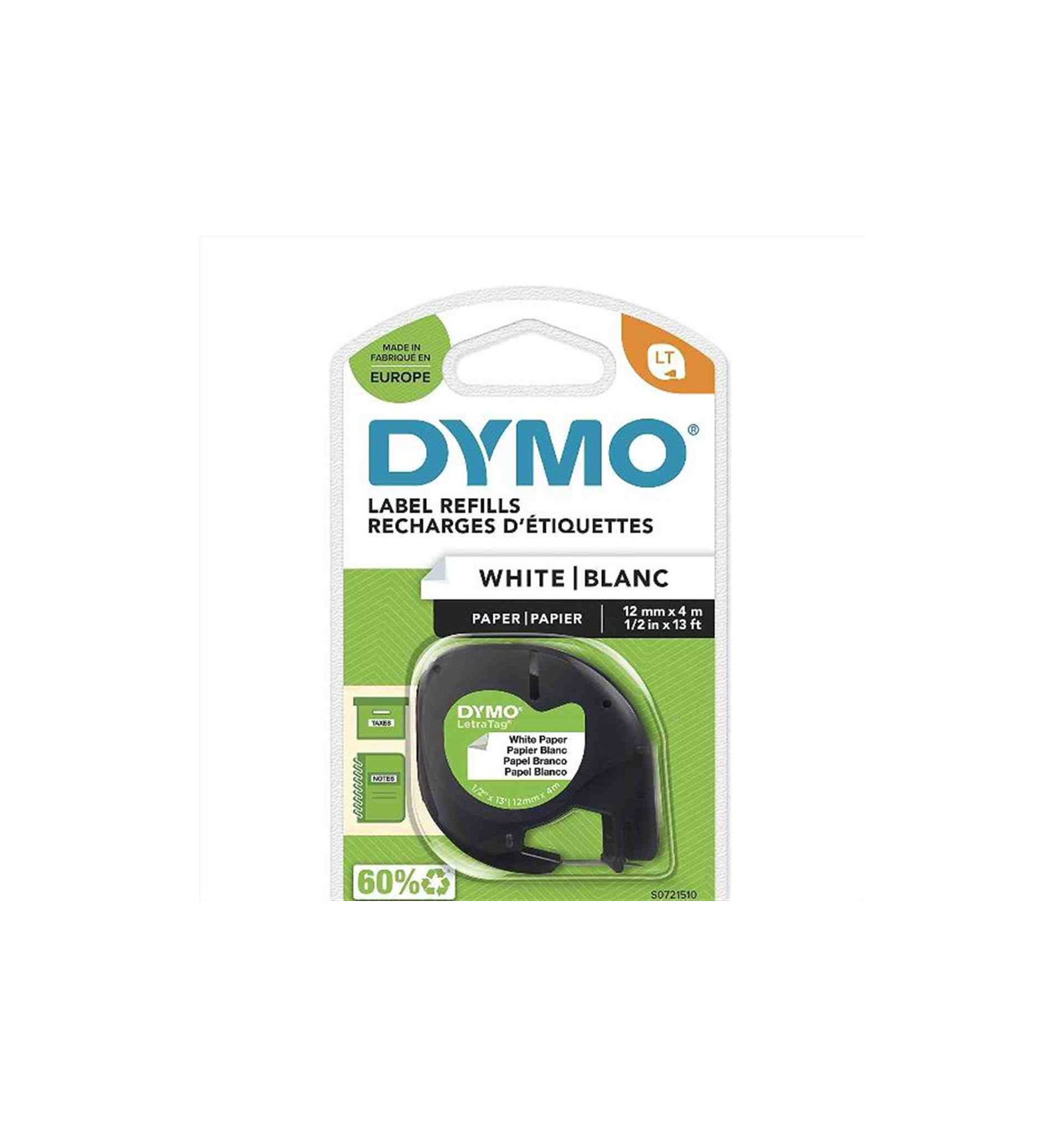 Create specificatamente per l'etichettatrice DYMO LetraTag, le etichette DYMO LT sono fornite in cassette facili da caricare e presentano un pre-taglio sul retro per una facile applicazione.