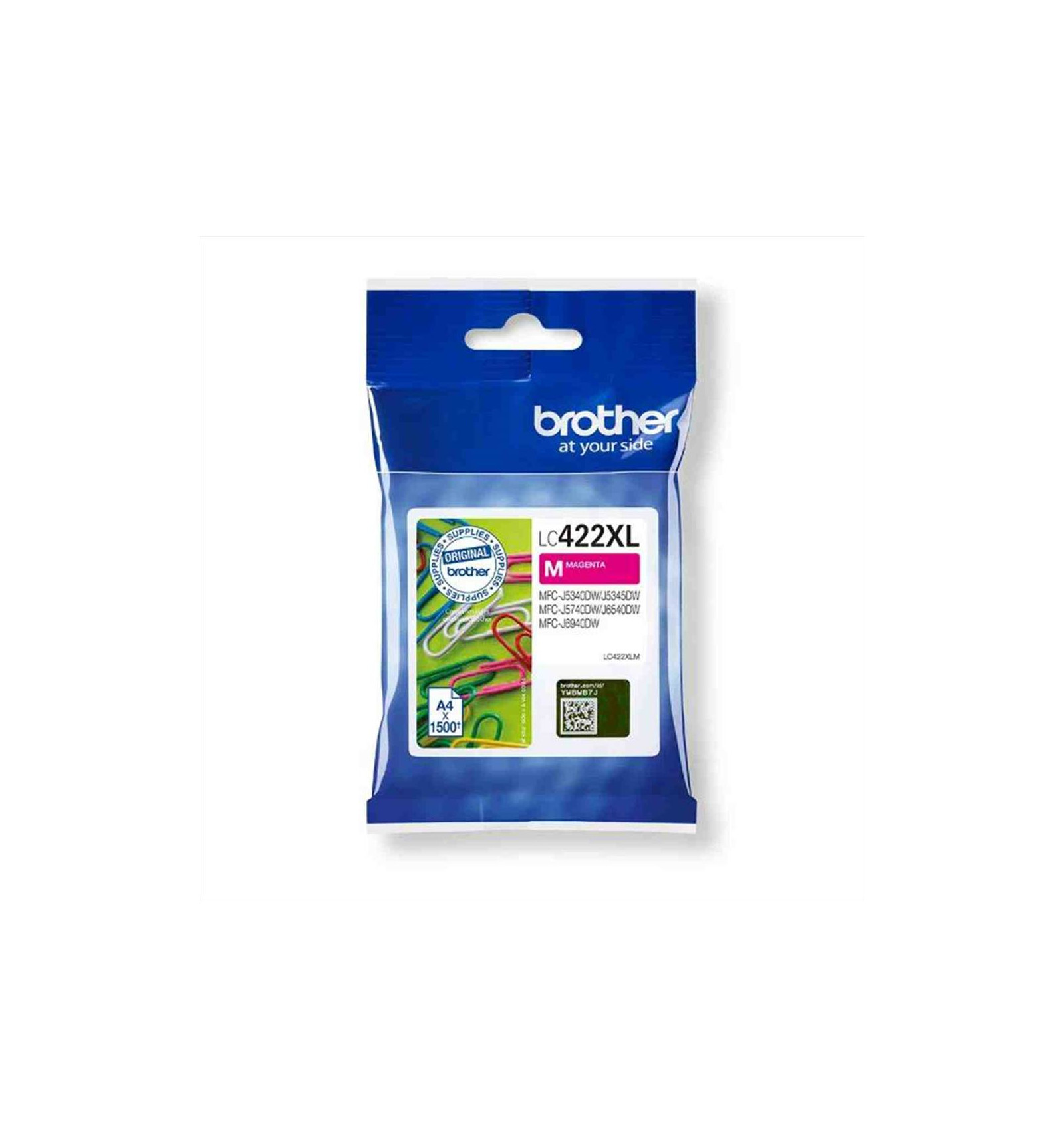 La cartuccia d'inchiostro magenta Brother LC422XLM, con proprietà di resistenza allo sbiancamento dei colori, garantisce stampe fluide, affidabili e di alta qualità dalla prima all'ultima stampa. Capacità di stampa di 1500 pagine.