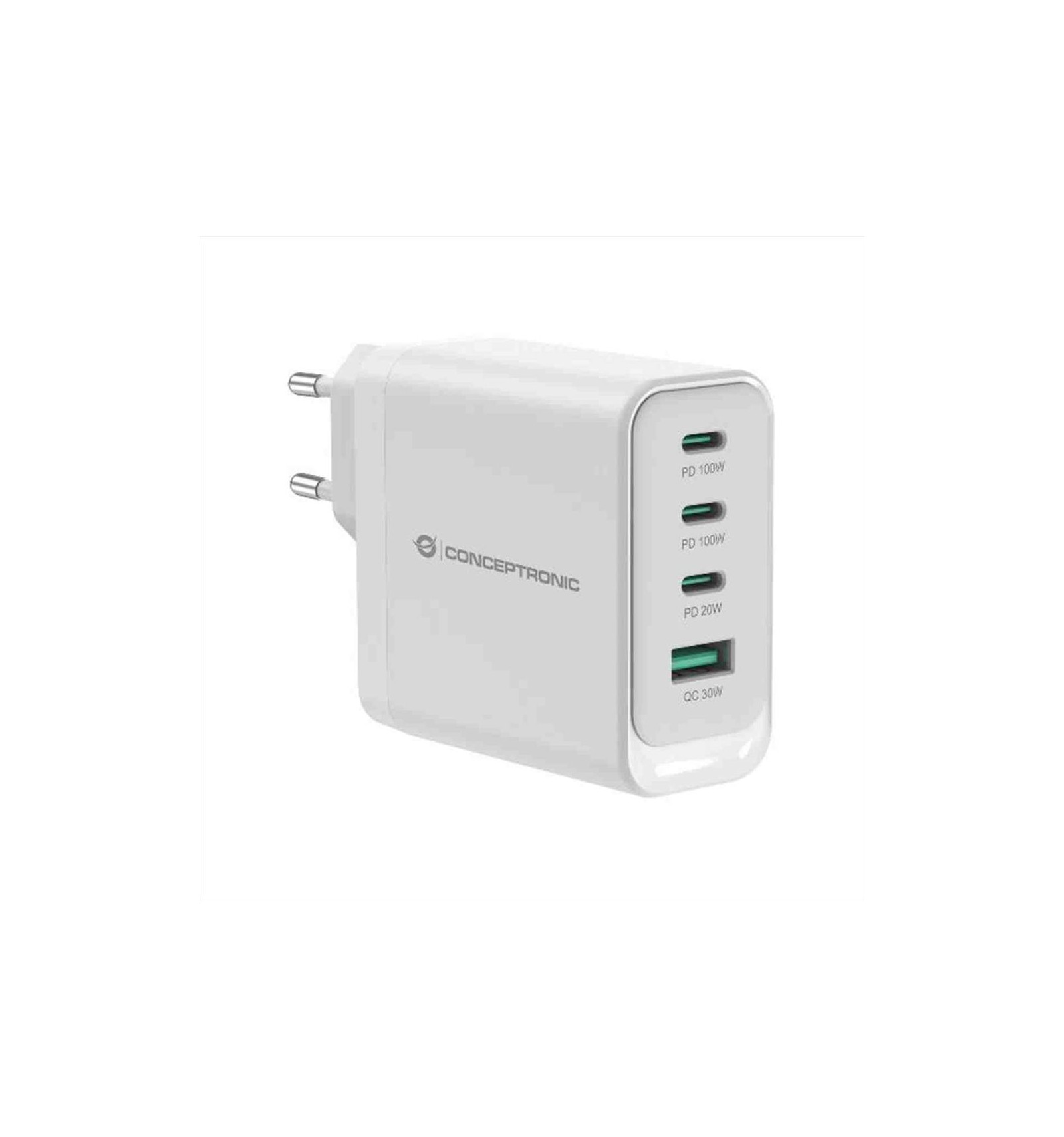 Questo caricabatterie sfrutta la tecnologia all'avanguardia del nitruro di gallio (GaN) per erogare fino a 100 W di potenza totale, garantendo una ricarica eccezionalmente rapida ed efficiente. È dotato di una selezione di porte versatile con 4 porte: 3 porte USB-C che supportano Power Delivery (PD) 3.0 e 1 porta USB-A con Quick Charge (QC) 3.0. Questa configurazione consente la ricarica simultanea di più dispositivi con requisiti di potenza diversi. Il caricabatterie supporta un'ampia gamma di opzioni di uscita da 3,3 V a 20,0 V, garantendo la compatibilità con qualsiasi dispositivo, dagli smartphone ai computer portatili. La sicurezza è garantita da protezioni integrate contro il sovraccarico, il cortocircuito e il surriscaldamento, per salvaguardare sia il caricabatterie che i dispositivi. Incorpora le tecnologie USB Power Delivery (PD) 3.0 e Quick Charge (QC) 3.0 per una ricarica rapida e dispone di un'alimentazione programmabile (PPS) per ottimizzare l'efficienza della ricarica e ridurre al minimo la generazione di calore.