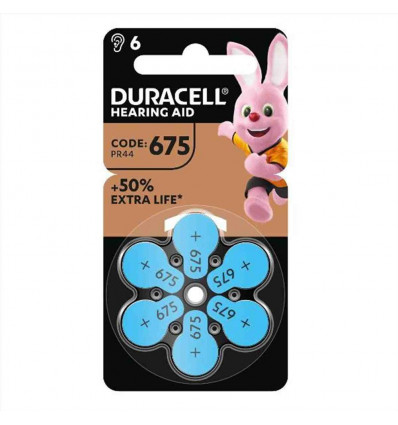 Odi ogni momento con le batterie per Apparecchi Acustici Duracell di formato 675. Facili da maneggiare e sostituire grazie all’extra lunga linguetta EasyTab, racchiuse in una confezione facile da aprire, le batterie per Apparecchi Acustici Duracell sono codificate a colori, grazie a cui puoi trovare facilmente il tuo formato. Inoltre, le batterie per Apparecchi Acustici Duracell sono dotate della Tecnologia di Conservazione d’Energia Duralock, che le permette di durare fino a 4 anni nell’ambiente di stoccaggio.