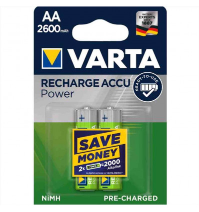 Varta Batteria Ricaricabile AA Stilo, 2600 mAh, Confezione da 2 Pezzi, Pre-caricate, Pronte all'Uso