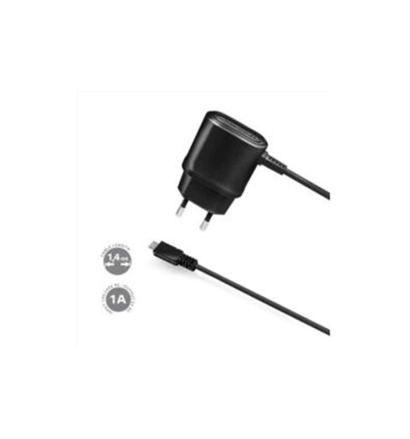 Caricabatterie da rete con connettore MicroUSB per la ricarica attraverso presa di corrente 100/240V.