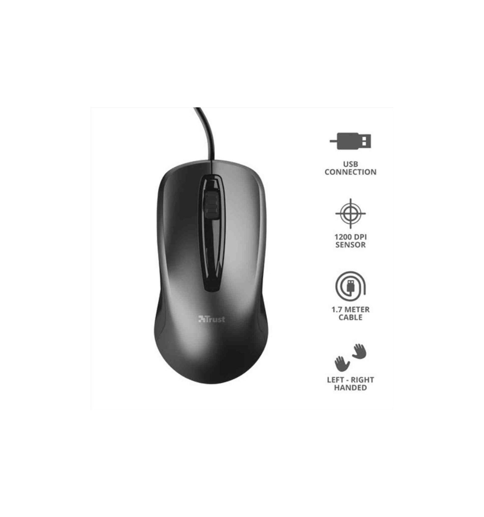 Con il sensore ottico (1200 DPI), il mouse ottico Trust Carve Wired è molto reattivo e ad alta precisione. È adatto a utenti destri e mancini; ora chiunque può cliccare e scorrere con estrema precisione.