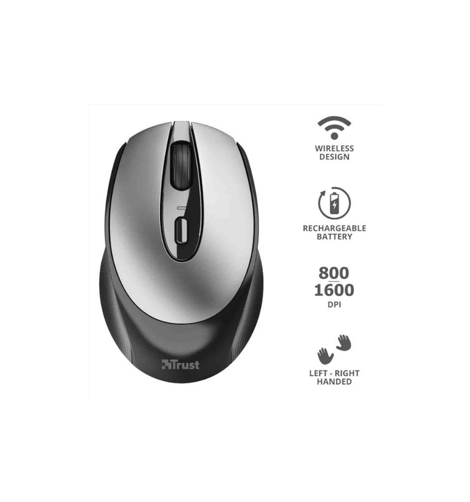 Il mouse wireless ricaricabile Trust Zaya è uno strumento pratico che ti semplifica la giornata lavorativa. È provvisto di quattro pulsanti, incluso un pratico commutatore DPI per regolare la velocità del cursore, un microricevitore USB che puoi facilmente riporre nello stesso mouse e batteria ricaricabile. Non dovrai mai più preoccuparti delle batterie.