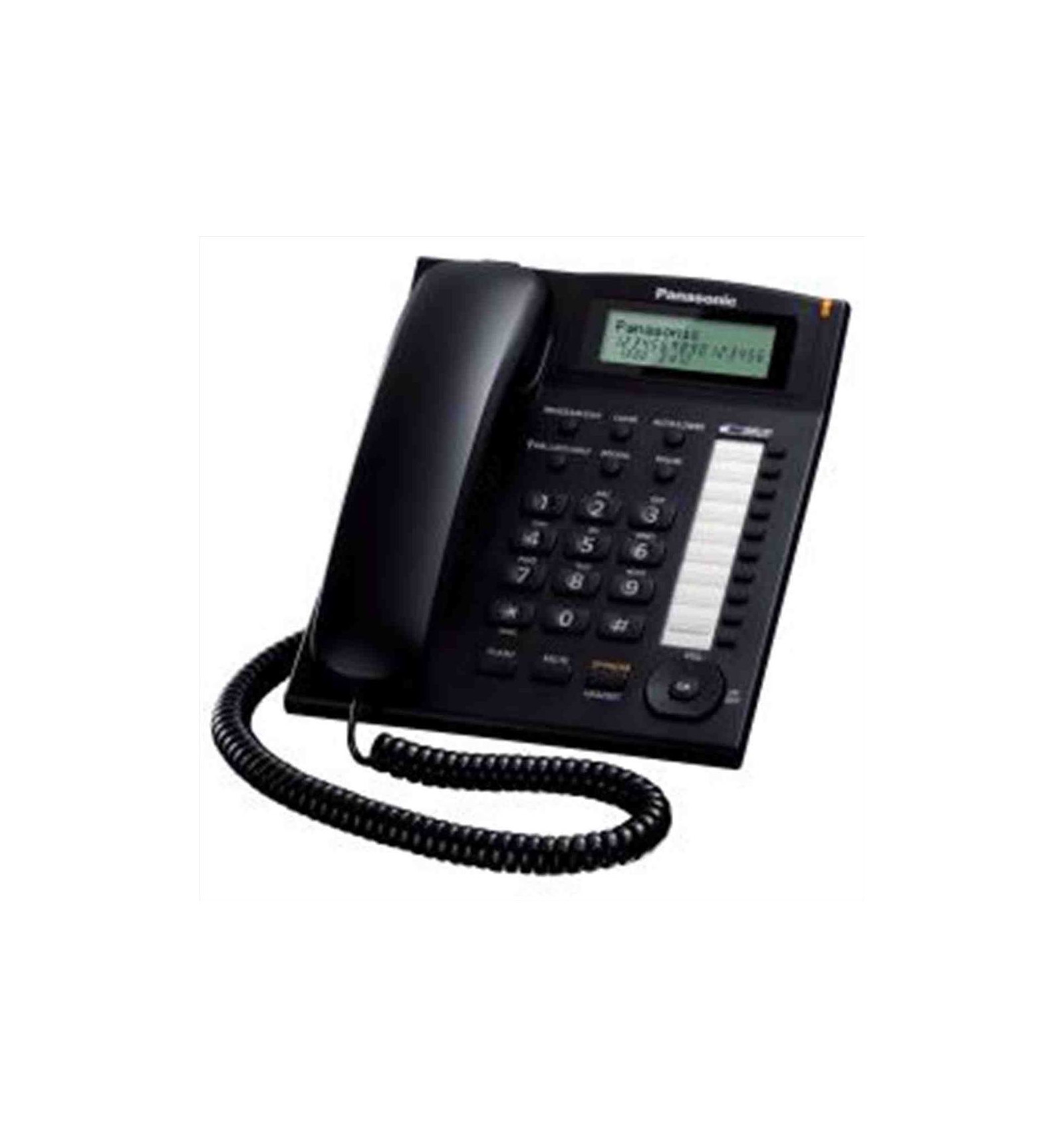 Il telefono a filo KX-TS880 si caratterizza per la presenza del display Lcd Alfanumerico a 3 riche con informazione dell'identificativo Chiamante, 50 locazioni di memoria, data ora numeri chiamati, durata delle chiamate, Navy Key, blocco delle chiamate. E' dotato di Vivavoce con regolazione altoparlante a 8 livelli e possiede 3 toni di suoneria. Ha la possibilità di visualizzalare la lista delle 20 chiamate perse/ricevute.Inoltre è presente l'orologio e il jack cuffia. Si caratterizza , infine, per la possibilità di bloccare la tastiera, per la visualizzazione della data e dell'ora, la visualizzazione del numero del chiamante e la visualizzazione della durata della chiamata.
